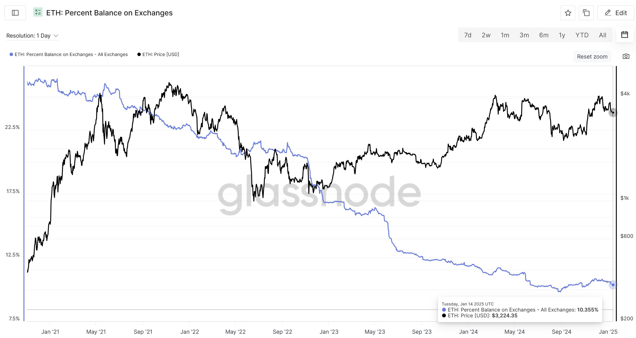 要知道当初包括是 James 和 Eric 也就是认为会到 BTC 的5%,而且 BTC 现货ETF的运营时间已经超过了一年,但 ETH 现货ETF运营的时间才六个月,能做到这个数据已经是不错了。