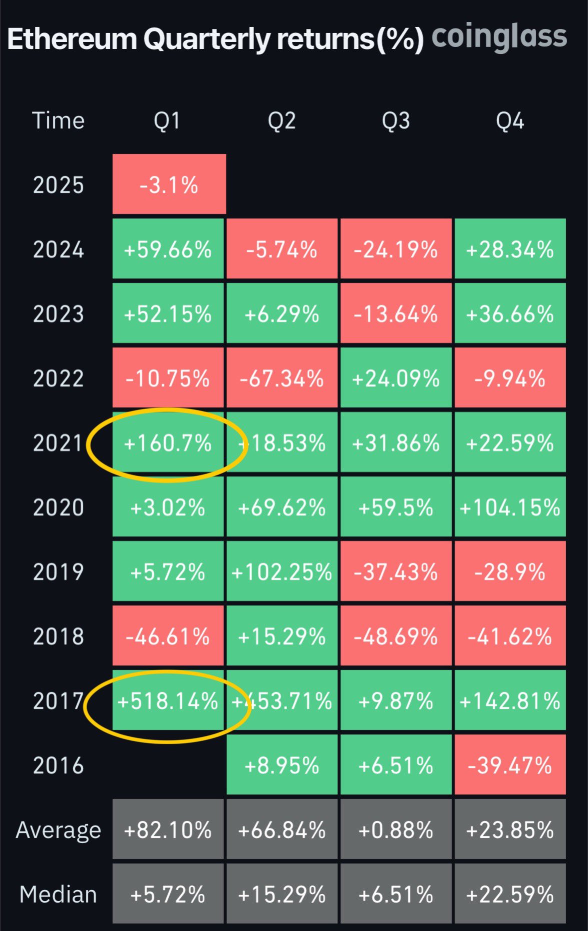 对以太坊乐观是有依据的,现在以太坊在交易所的余额持续暴跌,目前处于 10.35% 的历史最低水平。通常,减半之后的第一个季度,以太坊的表现非常的好,在2017年增长了518%,在2021年涨了160%。今年,截至目前居然还是负的3.1%。昨日,美国现货以太坊 ETF 净流入 1.666 亿美元,为本月最高。感觉以太坊随时都可以启动。