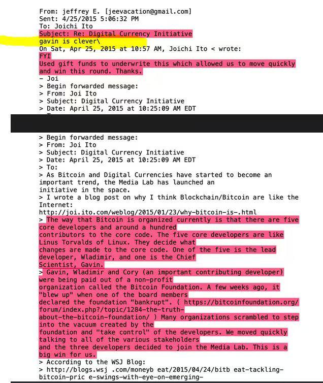 捐赠MIT Media Lab:爱泼斯坦向麻省理工学院(MIT)媒体实验室捐赠超过85万美元,该实验室曾为资金短缺的比特币核心开发者提供临时支持。文件中有邮件显示爱泼斯坦对此感到得意,称“三名核心开发者加入媒体实验室是对我们的巨大胜利”,引发社区对“比特币核心开发被间接影响”的猜测。
