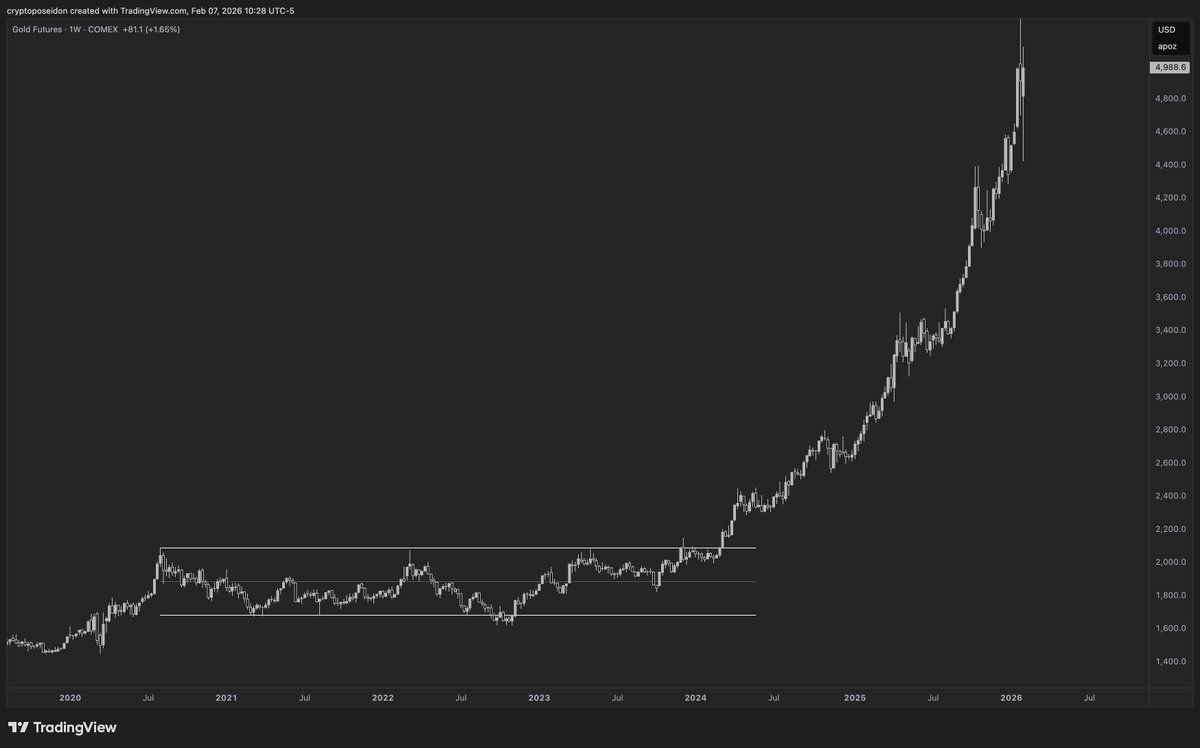 历史常常重演,以太坊当前的状态与黄金曾经在1600美元至2000美元区间内横盘四年时的情景极为相似。那时市场嘲笑黄金投资者,称其为停滞资产,而其他板块纷纷上涨。然而,一旦黄金突破该区间,它便开启了历史上最重大的上涨之一。