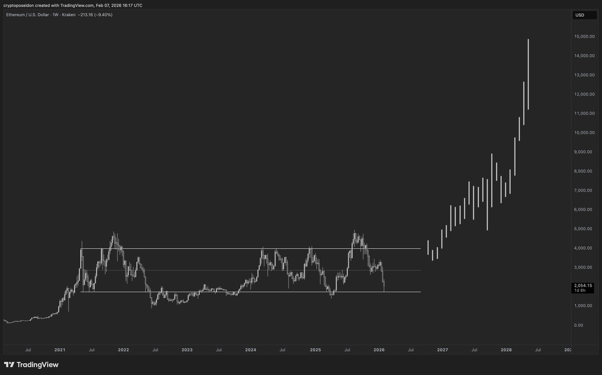 我们可以拉出数千张不同类型积累的图表,结论始终一致:长期盘整是巨大利好的前兆。从技术面看,以太坊目前为长期投资者提供了最具吸引力的风险回报比之一。我们正在见证一个高确定性的布局:下行受多年底部支撑限制,而上行则是垂直扩张。