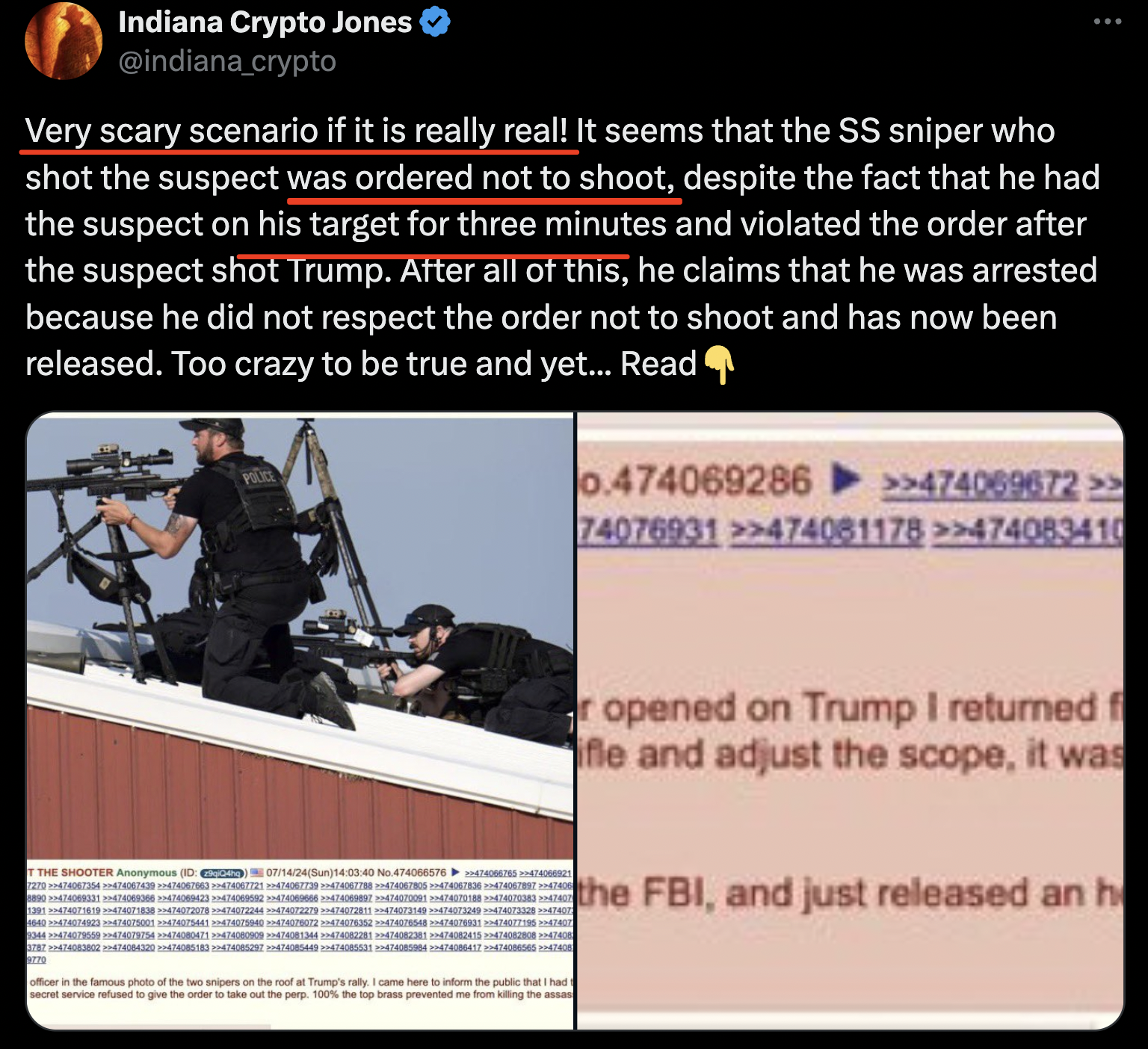 关于特朗普遇刺事件,在X上又有了一些新的信息,分享给大家,看看我上次说的对不对。