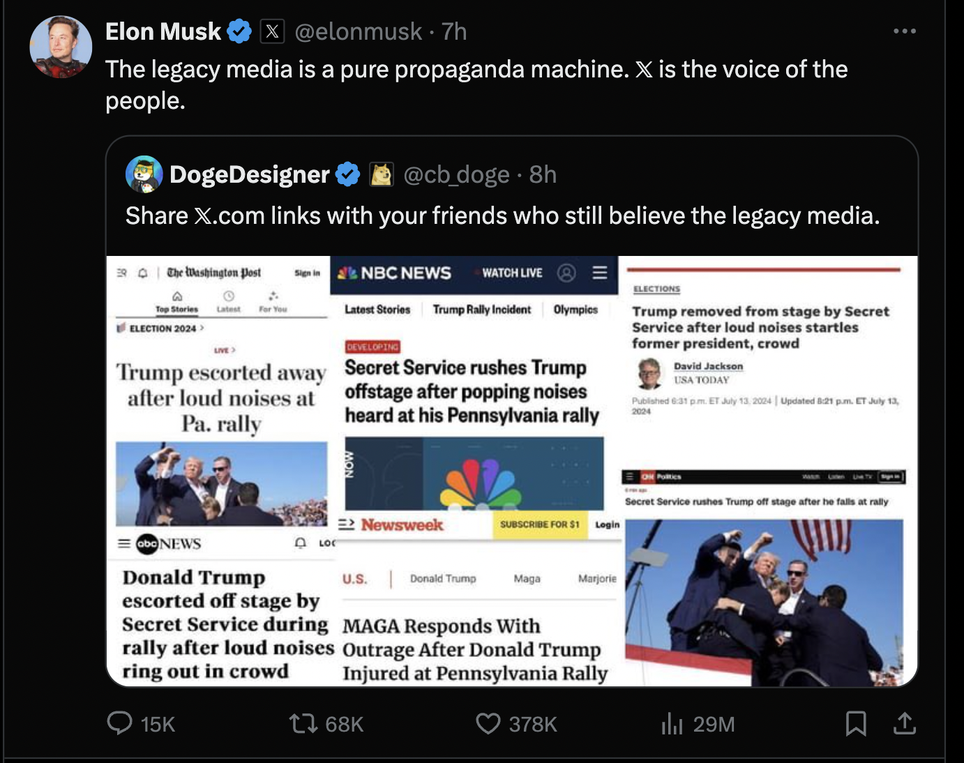 连马斯克都看不下去了,发推谴责主流媒体是纯粹的「左派」宣传机器。