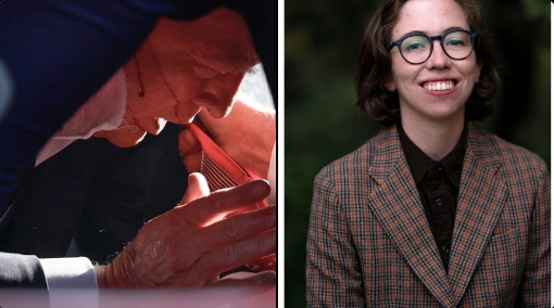 第二张:特朗普被保镖压在身下,鲜血从脸颊流下。