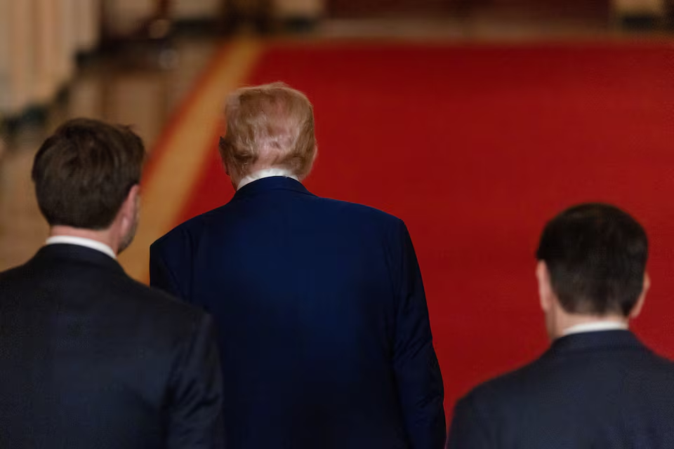 美国总统唐纳德·特朗普于2025年6月21日在华盛顿特区白宫向全国发表讲话后离开。此次讲话是在美国对伊朗核设施发动空袭后进行的。