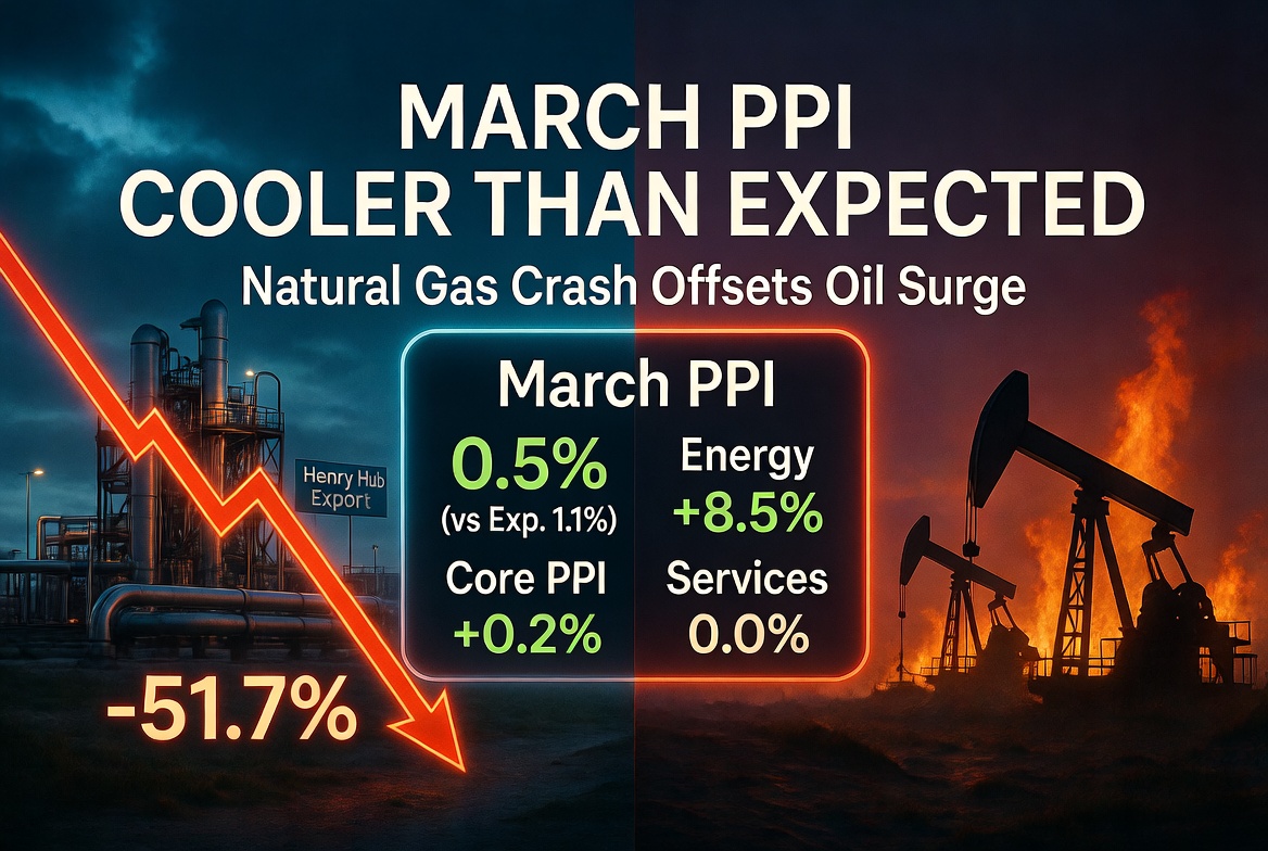 美国3月生产者价格指数(PPI)昨晚公布,结果有点意外。此前市场一度认为“伊朗局势冲击能源价格、进而推升3月通胀”,换句话说,市场定价是伊朗冲突推高油价,会带来PPI的明显跳升。但实际公布的数据全面低于预期,短期通胀担忧有所缓解。