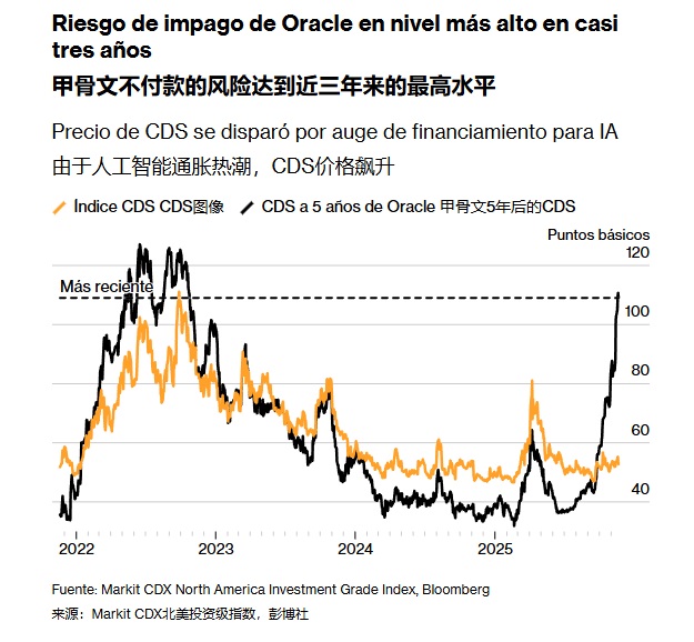 曾经那个以稳健著称的数据库巨头甲骨文,如今正站在一场风暴的中心——不是因为产品出问题,而是因为它押上全部身家豪赌人工智能,意外成了市场衡量AI风险的“温度计”。最近几个月,甲骨文五年期信用违约互换(CDS)的价格一路飙升,从年初的低位涨到1.11%,意味着每为1000万美元债务买保险,每年要花掉11.1万美元。这个数字是几个月前的三倍。