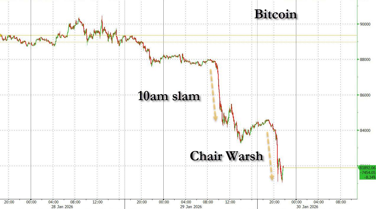 不止比特币,期货也下跌,美元和美债收益率走高(这意味着住房贷款成本更高,与特朗普承诺的“更可负担住房”相悖),黄金再次暴跌。市场押注沃什——这位以最鹰派的前美联储官员闻名,常主张更紧缩的货币政策和更小的美联储资产负债表(直到最近才转变口风以迎合特朗普)。