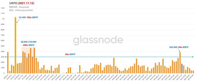 长期以来根据我对BTC筹码结构的观察,曾经得出过一条经验:“有巨量柱的地方,大概率不是周期的顶”。因为在巨量柱的周围通常都会堆积大量的筹码,形成了一个价格范围的堆积区。而有筹码堆积,说明在这里有大量的资金承接了卖出的BTC。