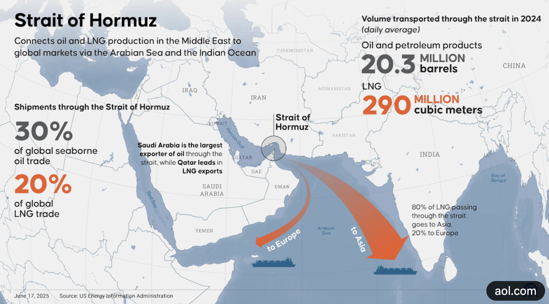 全球30%海运石油、20% 天然气都经过;80%的天然气流向亚洲(中国是最大买家); 每天约2030万桶石油直接卡住。