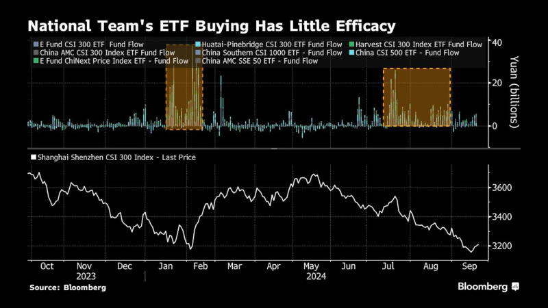 图:国家队此前大举买入A股的大盘ETF但收效甚微 来源:Bloomberg