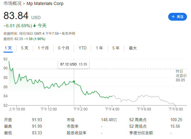 周五,美国国防部突然变卦,临时取消了一项高调的钴采购招标,直接导致相关稀土和电池金属股票大跌。MP Materials收跌6.69%,Energy Fuels收跌13.21%,USA Rare Earth收跌15.26%。