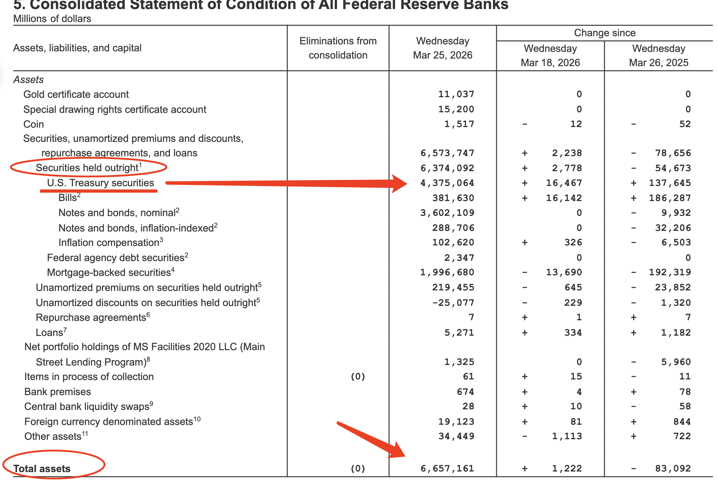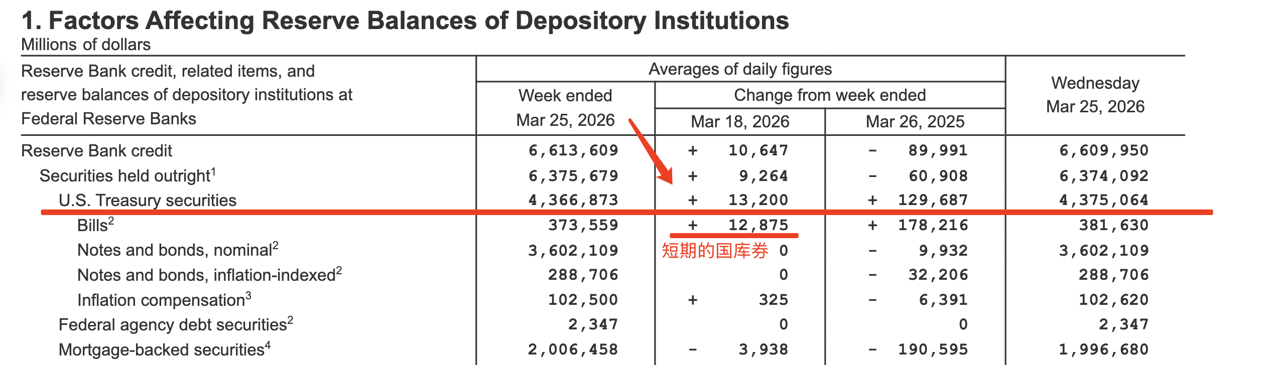 美联储总资产 6.657万亿美元(截至2026年3月25日), 持有美国国债约4.375万亿美