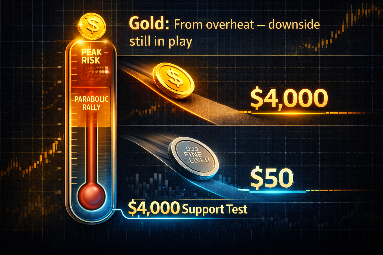 “黄金和白银在1月份出现抛物线式上涨,这带有2026年将成为下跌年的特征,作为顶部形成过程的一部分,”他在报告中写道。“动能可能将这一价值储存工具推高至6000美元/盎司,但正常均值回归指向4000美元。”