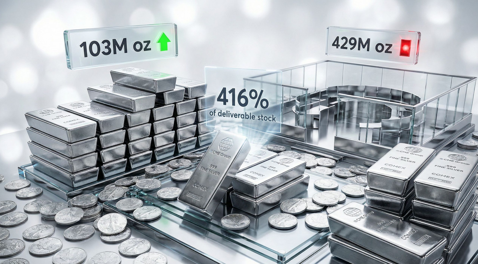 但问题是,现在Comex官方登记的可交付白银库存,只有8200万到1.13亿盎司,仅够覆盖需要量的24%。咱们用大白话算笔账:如果还像1月份那样,98%的订单都要交实物,那需要4.2亿到5.17亿盎司白银,和现有库存差了3.07亿到4.35亿盎司(相当于缺了3/4还多);就算按历史平均水平,只有25%的订单要交实物,也会缺几千万盎司;要是交付比例涨到50%-70%,缺口会直接扩大到2亿-3亿盎司以上。更关键的是,库存还在不断减少——每天大概要少78.5万盎司,照这个速度,到2月27日(交收通知开始的日子),能用来交付的白银可能连8500万盎司都不到,缺口只会更大。