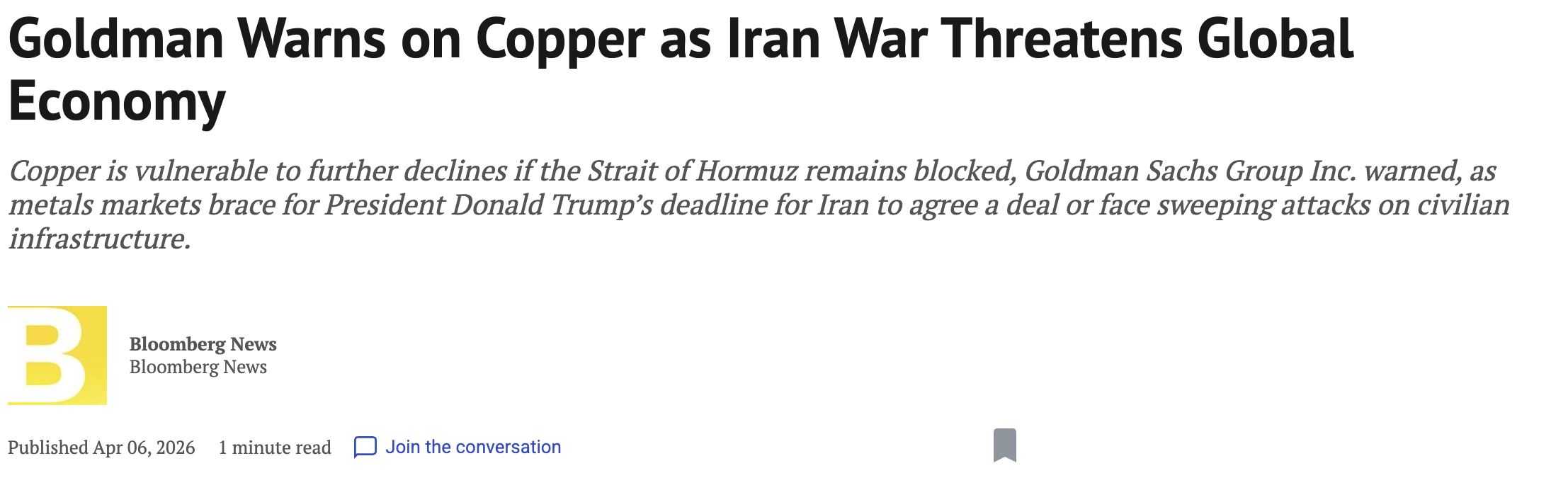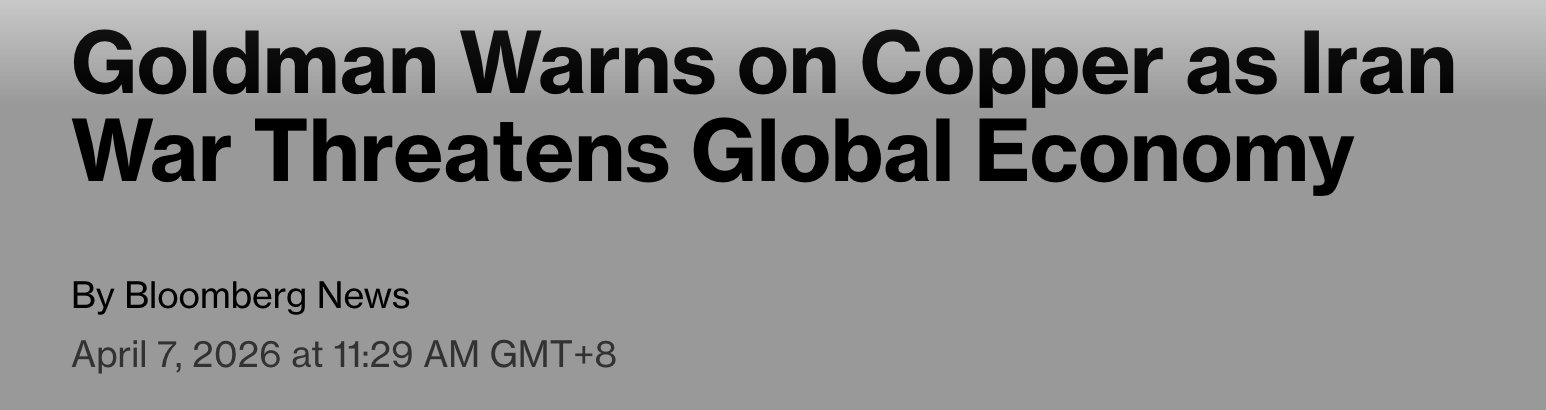 逻辑其实很直接。中东紧张推高油价,能源价格暴涨加剧通胀,美联储就拖延降息,能维持高利率,甚至加息,全球经济增长就可能直接受到拖累。经济一弱,家电、制造、基建等传统用铜领域需求率先收缩——哪怕AI和新能源的增量还在,也撑不住整体需求的下滑。高盛看空的不是铜的长期价值,而是短期经济走弱带来的需求压力。