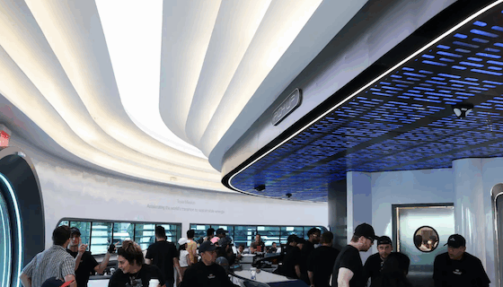 餐厅配备80个V4超级充电桩、Optimus机器人服务员与两块45英尺LED电影屏幕,融合1950年代复古风与未来科技。是“充电与娱乐的终极体验”,吸引特斯拉粉丝排队13小时入场。