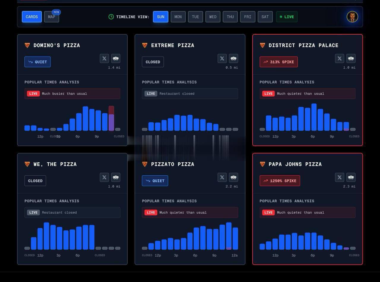 最近,预示着美国即将做出军事行动或计划的“披萨指数”据称暴涨数百甚至上千个百分点(1250%)!据说,每当五角大楼附近披萨店(Papa John's pizzeria)订单激增(尤其是深夜),往往预示高层官员加班,重大军事行动在酝酿。因为紧急会议时,大家总得吃点东西,而披萨是最方便的选择。这个“指数”曾在过去几次美国军事行动前“命中”,如2020年代的一些中东空袭。