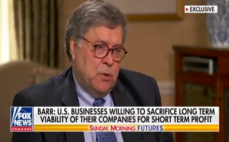 当地时间6月21日,美国司法部长威廉·巴尔接受福克斯新闻《周日早间期货》节目专访。巴尔在这次采访中谈及多个问题,包括黑人弗洛伊德之死引发的警察系统改革问题、科技审查制度、“通俄门”调查,以及惹怒特朗普的前总统国家安全事务助理博尔顿的新书等,他还用了一段不小的篇幅提及中国。