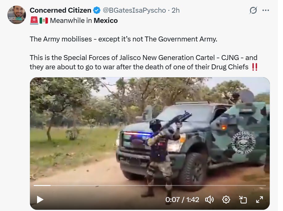 当地的关键道路被武装分子设置路障,他们还焚烧公交车、卡车与私家车,此举不仅是为了瘫痪当地安全部队的行动,更是为了对外宣示其对该区域的持续掌控。其中,Costco 商圈停车场的车辆被点燃后,火光冲天、黑烟滚滚的画面令人触目惊心,也让外界清晰意识到,卡特尔的暴力行径已逼近当地的游客区与中产阶级聚居区。当地酒店对住客实施了事实上的就地避难管控,官方也暂停了所有公共交通,同时敦促居民尽量留在家中。航空出行系统也陷入全面混乱,因机场周边接连传出枪击和车辆被烧的消息,多家航空公司紧急取消航班,大量旅客滞留当地。一场看似 “成功” 的剿枭行动,竟让整条度假走廊在一夜之间陷入未知的动荡。